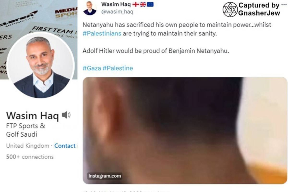 واضطر وسيم حق، الذي يشغل منصب ممثل للمجتمعات المتنوعة (السود والآسيويون والأقليات العرقية) منذ عام 2019، إلى حذف تغريدته والاعتذار، بعدما كتب على شبكة إكس: «لقد ضحى نتنياهو بشعبه من أجل البقاء في السلطة.... أدولف هتلر سيكون فخورا ببنيامين نتنياهو».