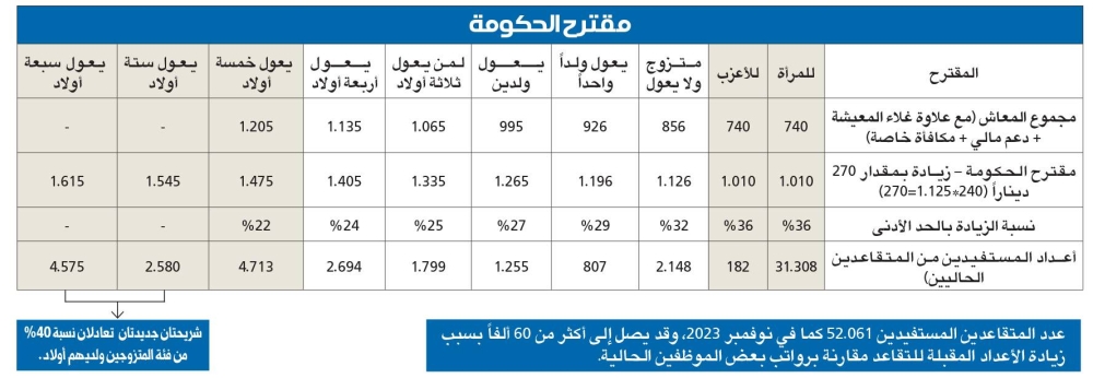 القانون الذي جاء ضمن أجندة الخارطة التشريعية لجلسة أمس، تم إقراره بموافقة السلطتين، وبموجب ما قدمته الحكومة من رؤية جديدة نصت على زيادة الحد الأدنى للمعاشات التقاعدية إلى 1010 دنانير، وصولاً إلى 1615 ديناراً لمن يعول 7 أبناء فأكثر، في وقت أجَّل المجلس مناقشة زيادة القرض الحسن إلى 21 ضعفاً حتى جلسة 19 ديسمبر، بناءً على طلب الوزير الجارالله، الذي تعهد بتقديم تصوُّر الحكومة على هذا الصعيد إلى اللجنة المالية البرلمانية، في حين رُفِعت الجلسة بموافقة أغلبية الأعضاء دون الانتقال إلى تقرير اللجنة المالية بشأن زيادة علاوة غلاء المعيشة.