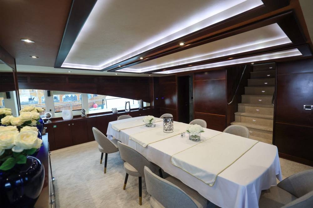 تقول مسؤولة التسويق في شركة اكسكلوسيف ياختس، التي تشغِّل اليخت، جيني ثاكر: «لدينا طباخ على متن اليخت سيقوم بتحضير أطباق من كل أنحاء العالم». كما توفر الشركة خدمات على اليخت وفق طلب الزبائن. وتعرض الشركة مجموعة من الخيارات لمشاهدة كأس العالم، وفق ثاكر، التي تشير إلى أن «الحد الأدنى لاستئجار يخت هو 15 ألف دولار لليلة الواحدة لمشاهدة كأس العالم في عرض البحر». وأضافت أن الشركة تلقت حتى الآن 15 حجزاً، وأن غالبية الحجوزات تضم شخصين أو ثلاثة. ووصفت الأشخاص الهتمين بالخدمة بأنهم «فعلاً من كبار الشخصيات، ومُلاك سيارات فخمة، من الصفوة»، موضحة أن غالبية الحجوزات هي «لمباريات نصف النهائي والنهائي» في المونديال.