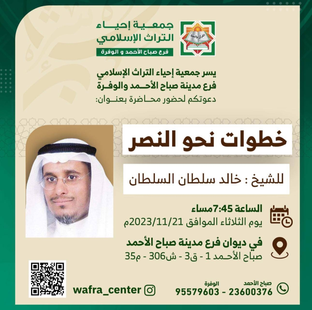 «التراث» تنظم محاضرة «خطوات نحو النصر»