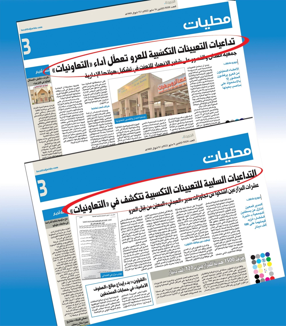 • تأكيداً لما أثارته «الجريدة•» عن تكسباتهما الانتخابية وعبثهما في تعيينات «التعاونيات»