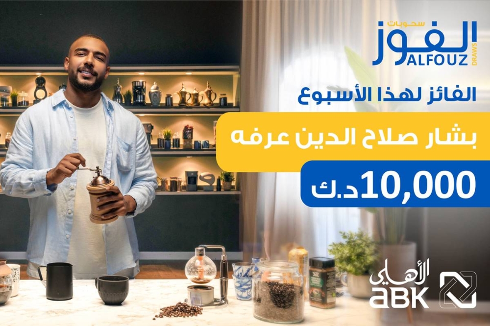 أعلن البنك الأهلي الكويتي فوز، بشار صلاح الدين عرفة، بالسحب الأسبوعي لحساب «الفوز» للجوائز، بجائزة نقدية 10,000 دينار، وذلك تحت إشراف وزارة التجارة والصناعة، وتم إعلان الفائز أمس.