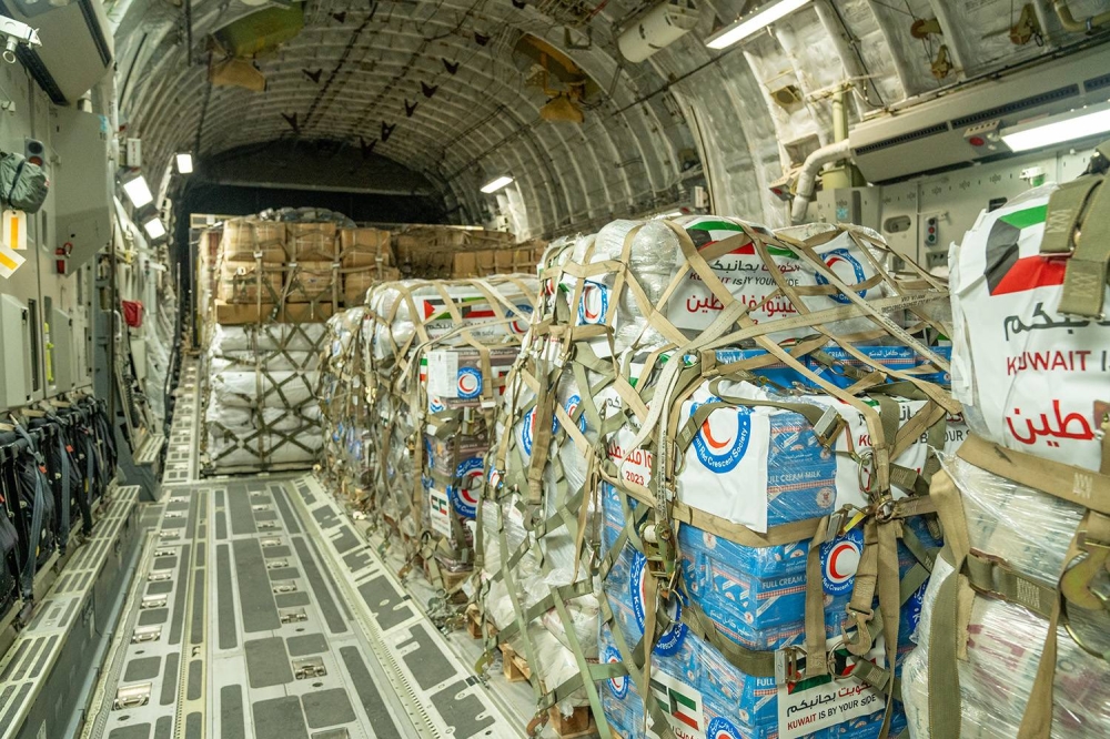وصلت اليوم، الطائرة الإغاثية الـ27 من الجسر الجوي الكويتي إلى مطار العريش المصري وعلى متنها 40 طنا من المواد الغذائية والمستلزمات الطبية والخيام لنقلها الى قطاع غزة.