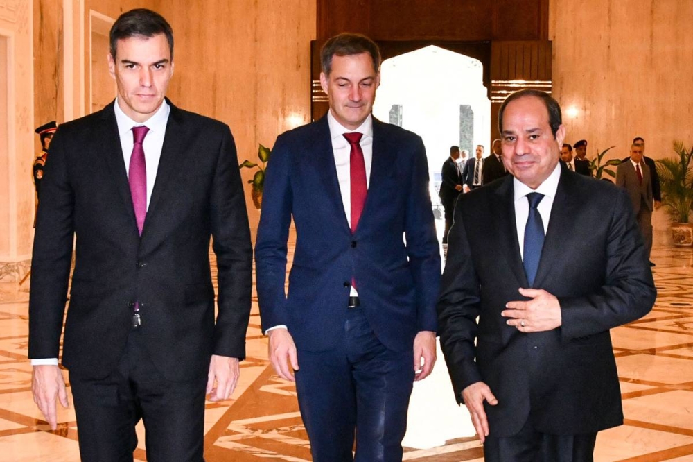 وقال السيسي، في مؤتمر صحافي مشترك بالقاهرة مع رئيس الوزراء الإسباني بيدرو سانتشيز، ورئيس الوزراء البلجيكي ألكسندر دي كرو، أمس الأول: «قلنا إننا مستعدون أن تكون هذه الدولة منزوعة السلاح وأيضاً هناك ضمانات بقوات سواء هذه القوات من الناتو (حلف شمال الأطلسي) أو قوات من الأمم المتحدة أو قوات عربية أو أميركية مثل ما ترونه مناسباً، حتى نحقق الأمن لكلتا الدولتين، الدولة الفلسطينية الوليدة والدولة الإسرائيلية». وأشار السيسي إلى أن «مسار حل الدولتين فكرة استنفدت على مدار 30 سنة ولم تحقق الكثير»، داعياً إلى «الاعتراف بالدولة الفلسطينية».