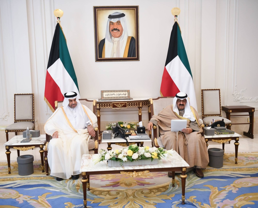 وقام بتسليم الرسالة لسمو ولي العهد سفير دولة قطر لدى دولة الكويت علي بن عبدالله آل محمود. وحضر المقابلة كبار المسؤولين بالديوان الأميري وديوان سمو ولي العهد.