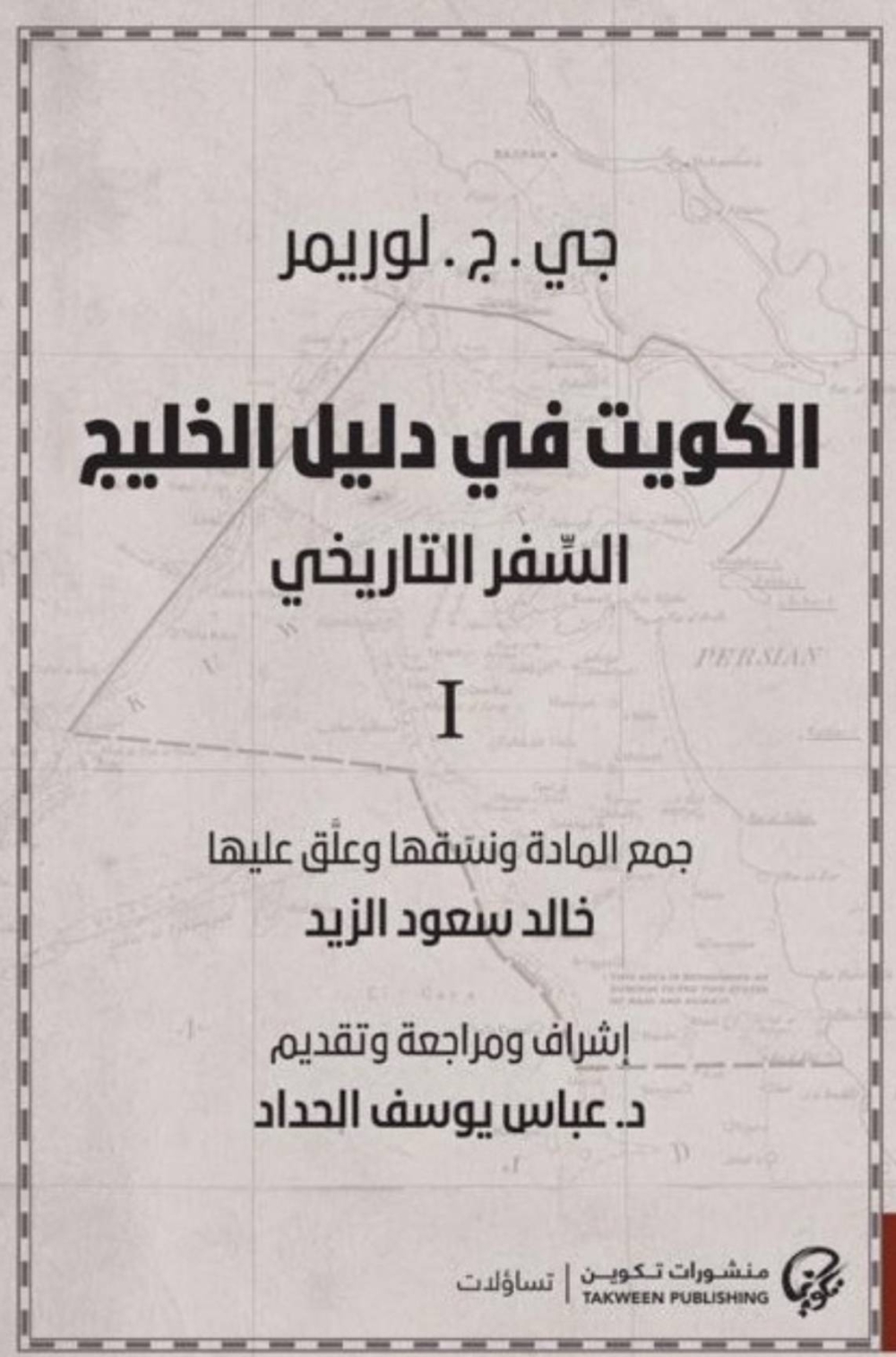 صدر عن دار منشورات تكوين بمعرض الكويت الدولي للكتاب، كتاب «الكويت في دليل الخليج... السفر التاريخي»، للكاتب جي. ج. لوريمر، وهو إصدار جديد جمع مادته ونسقها وعلَّق عليها خالد سعود الزيد، وأشرف عليها وراجعها د. عباس الحداد.
