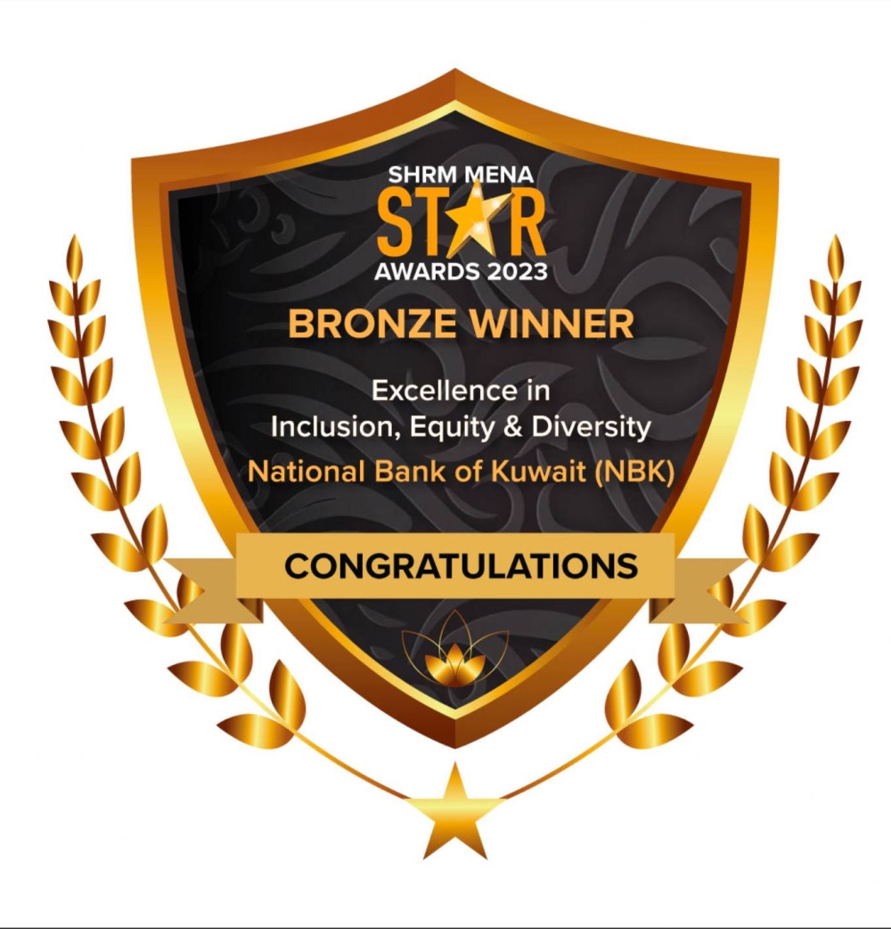 منحت جمعية إدارة الموارد البشرية الأميركية SHRM المرموقة بنك الكويت الوطني الجائزة البرونزية في فئة التميز في الشمول والمساواة والتنوع، ضمن جوائز الشرق الأوسط وشمال إفريقيا لعام 2023، عن برنامج NBK RISE المبادرة العالمية لتعزيز ودعم القيادات النسائية.