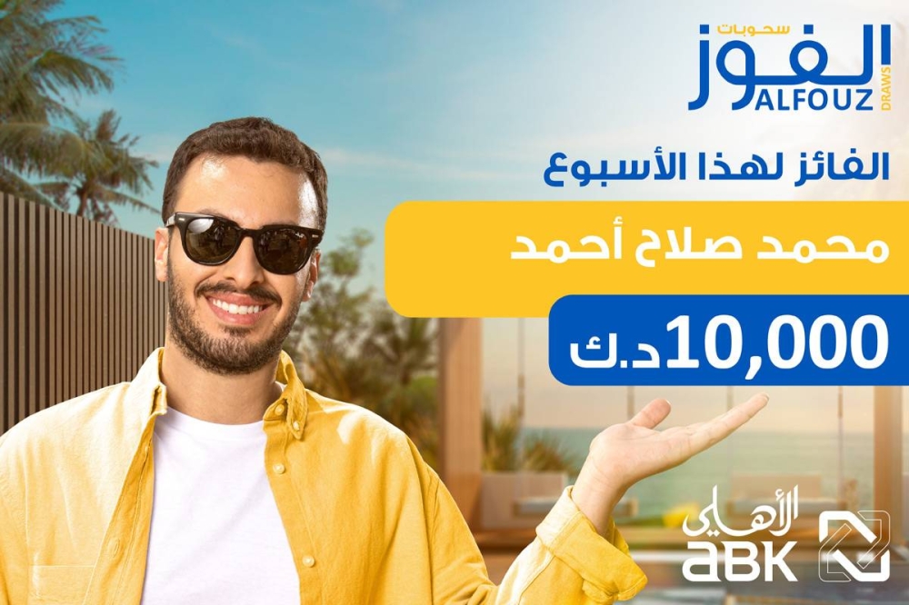 أعلن البنك الأهلي الكويتي فوز محمد صلاح أحمد في السحب الأسبوعي لحساب «الفوز» للجوائز، بجائزة نقدية قدرها 10000 دينار، والذي أقيم تحت إشراف وزارة التجارة والصناعة، وتم إعلان الفائز الاثنين 14 الجاري.