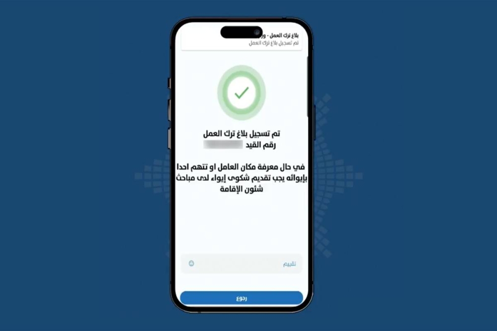 أعلنت وزارة الداخلية، اليوم، إضافة خدمة تسجيل «بلاغ ترك العمل» للعمالة المنزلية عبر التطبيق الحكومي للخدمات الالكترونية «سهل».