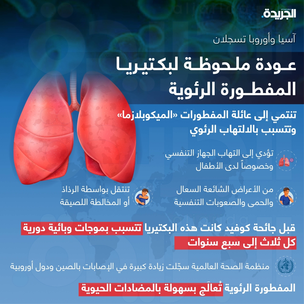 تُسجّل في آسيا وأوروبا عودة ملحوظة بعد غياب لبكتيريا المفطورة الرئوية التي تؤدي إلى التهاب الجهاز التنفسي وخصوصاً لدى الأطفال، إذ تشهد هاتان المنطقتان من العالم موجات وبائية دفعت السلطات الصحية والعلماء إلى الدعوة لتوخي الحذر من دون هلع.