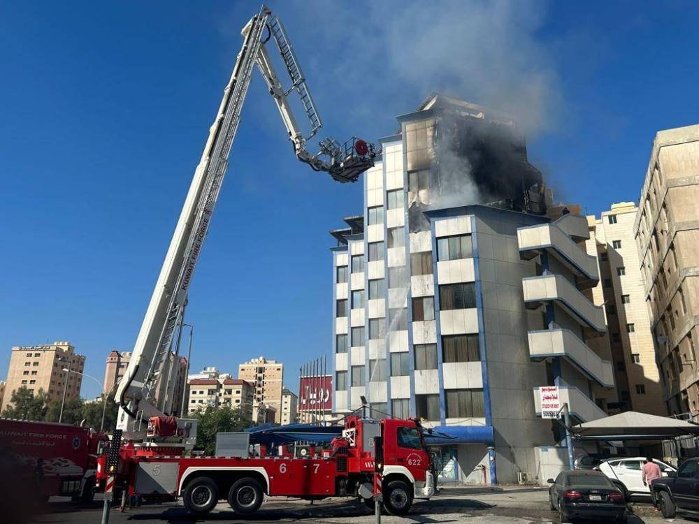 وقالت قوة الإطفاء العام إن الحريق امتد إلى الدور السادس حيث باشرت الفرق بمكافحة الحريق والسيطرة عليه وإخماده دون وقوع أي إصابات تذكر.