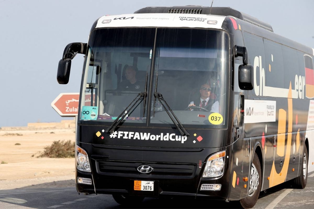 وبعد السفر من مسقط إلى الدوحة عقب الفوز ودياً على المنتخب العماني بهدف دون رد، توجهت بعثة المنتخب الألماني، بقيادة المدرب هانسي فليك، إلى مقر إقامتها في أقصى شمال قطر. ولدى دخول المنتخب الألماني إلى مقر إقامته في منتجع زلال الصحي، احتشد العديد من المصورين والمراسلين الصحافيين لمتابعة وصول بعثة «الماكينات».