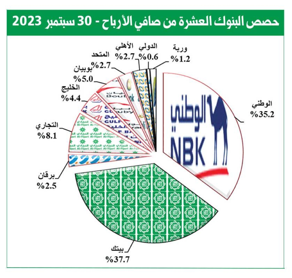 وبذلك، استحوذ بنكان (بيتك والوطني) على %72.9 من إجمالي أرباح البنوك العشرة، ما يرجح أن اقتصادات العمل المصرفي لمصلحة الكيانات المصرفية الكبرى.