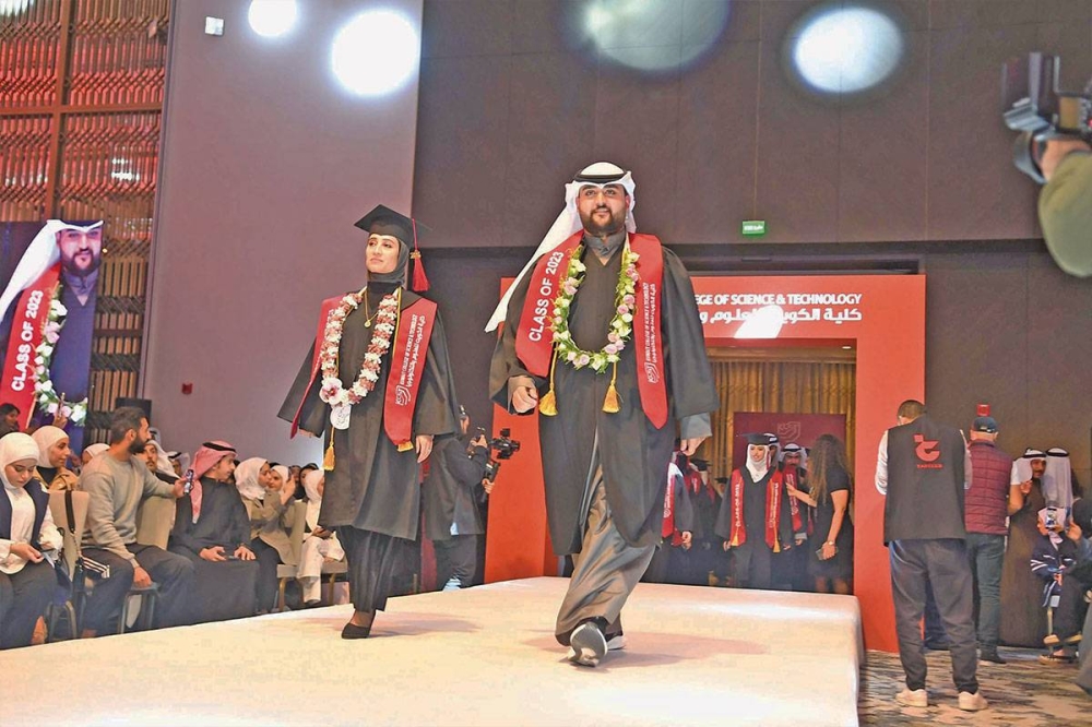احتفلت كلية الكويت للعلوم والتكنولوجيا بتخريج الدفعة الثالثة من طلابها وطالباتها لعام 2022-2023، وسط حضور تربوي حاشد، وفرحة كبرى لأهالي الخريجين.