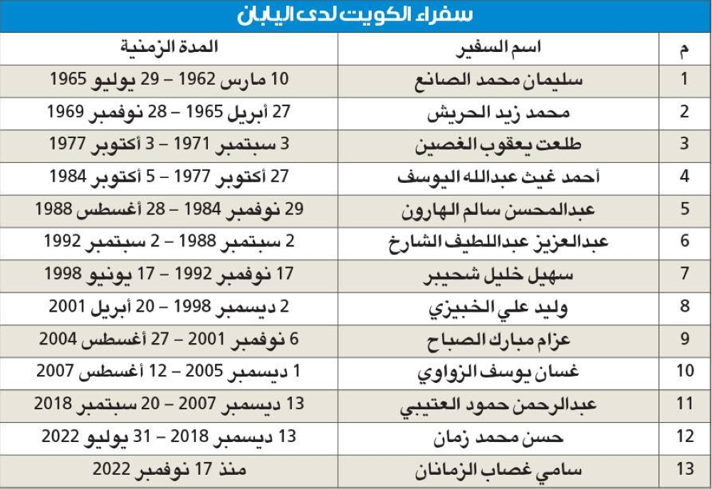 13 سفيراً كويتياً لدى اليابان أولهم سليمان الصانع إلى سامي الزمانان