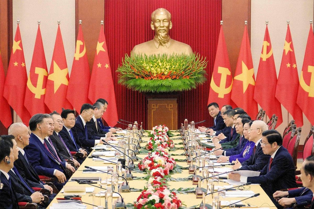 وفي اجتماعه مع الأمين العام للجنة المركزية للحزب الشيوعي الفيتنامي نغوين فو ترونغ، قال شي إن الصين تدعم بشكل كامل «قضية البناء الاشتراكي في فيتنام، وترى دوماً علاقاتها مع فيتنام من منظور استراتيجي طويل الأجل»، مضيفاً أن الصين تعطي أولوية لعلاقاتها مع فيتنام في دبلوماسية الجوار الصينية.وقال الرئيس الفيتنامي إن بلاده تلتزم بسياسة خارجية مستقلة وتعد تنمية العلاقات مع الصين أولوية قصوى وخيارا استراتيجيا وانها تدعم بقوة المبادرات العالمية الرئيسية التي اقترحها شي ومستعدة للمشاركة فيها بنشاط.
