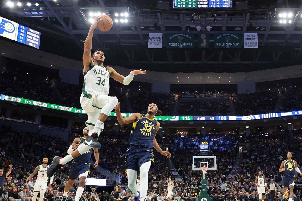 تألق النجم اليوناني يانيس أنتيتوكونمبو وقاد فريقه ميلووكي باكس للفوز على ضيفه إنديانا بايسرز 140-126 بتسجيله 64 نقطة، في دوري كرة السلة الأميركي للمحترفين.