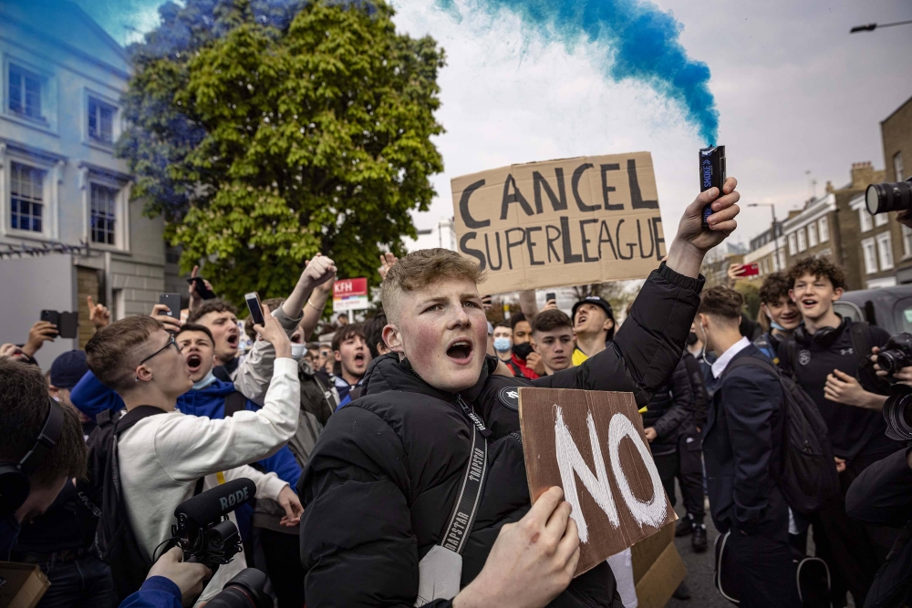 وبعد ذلك، هدد الاتحاد الأوروبي «يويفا» ونظيره الدولي «فيفا» بفرض عقوبات وسط معارضة صاخبة من الجماهير لهذا المشروع، لاسيما في إنكلترا، ما دفع أندية أرسنال وتشلسي وليفربول ومانشستر سيتي ومانشستر يونايتد وتوتنهام إلى الانسحاب منه بعد 48 ساعة فقط على إطلاق المشروع.