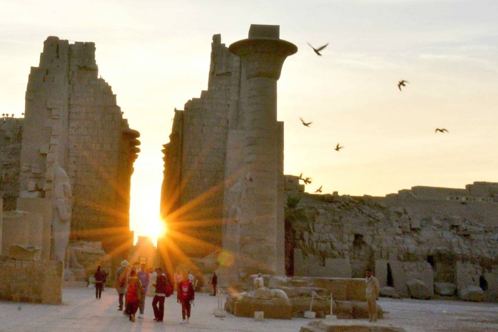 وتسللت أشعة الشمس وسط بوابات وأعمدة المعبد الشاهقة، لتضيء ظُلمة قُدس أقداس آمون رع «ملك الآلهة» و«سيّد الكرنك»، و«سيد عروض الأرضين في طيبة (الأقصر حالياً) عاصمة مصر القديمة.