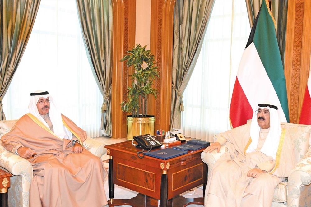 مع ترقب صدور مرسوم تسمية رئيس الوزراء الذي سيعهد إليه بتشكيل الحكومة الجديدة، استقبل سمو أمير البلاد الشيخ مشعل الأحمد، في قصر السيف أمس، رؤساء مجلس الأمة أحمد السعدون، ومجلس الوزراء سمو الشيخ أحمد نواف الأحمد، والمجلس الأعلى للقضاء رئيس محكمة التمييز المستشار د. عادل بورسلي.