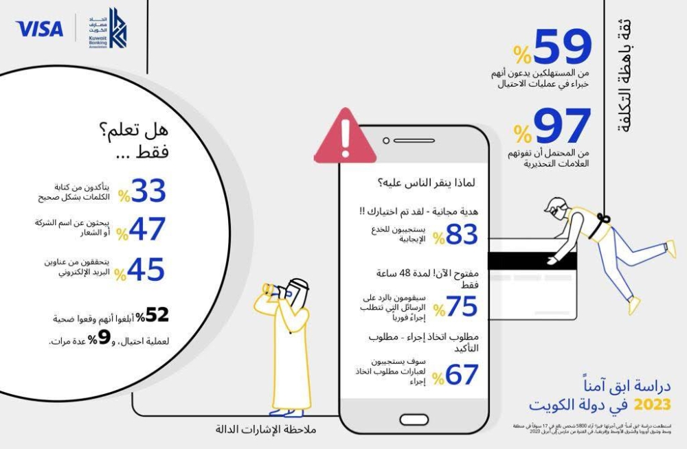 أكدت نسخة هذا العام من دراسة «ابقَ آمناً» السنوية، التي صدرت اليوم، عن شركة Visa بالتعاون مع اتحاد مصارف الكويت، أن الثقة المفرطة التي يتمتع بها المستهلكون تجعلهم أكثر عُرضة لعمليات الاحتيال.