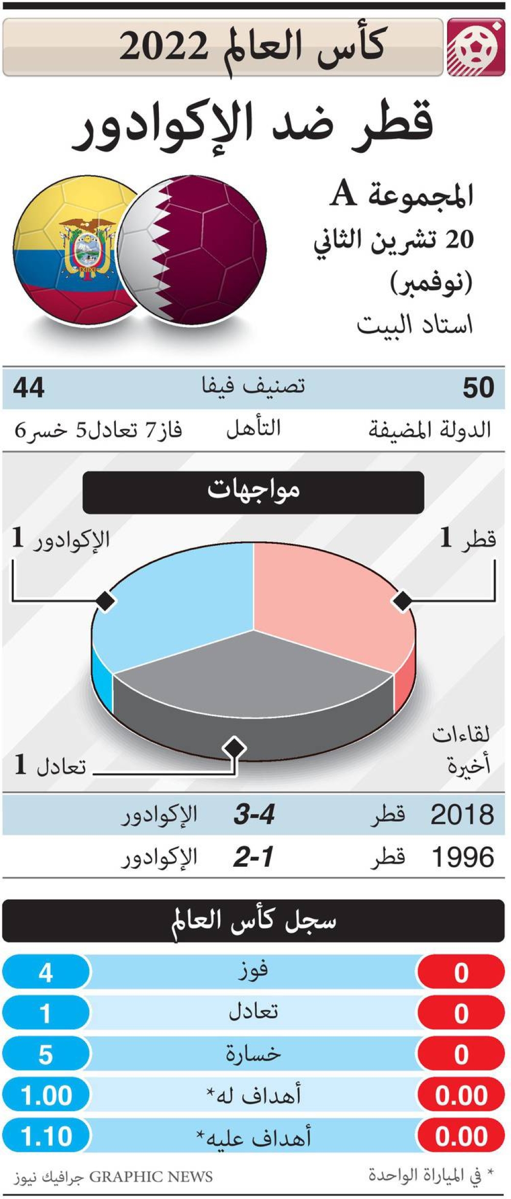 وهذه ستكون المرة الأولى التي تكون فيها الدولة المضيفة مشاركة للمرة الأولى في المونديال منذ إيطاليا عام 1934، وتوج حينها «الآزوري» باللقب. في المقابل، يسعى «الأدعم» إلى تجنّب سيناريو جنوب إفريقيا، الدولة المضيفة الوحيدة التي ودعت من دور المجموعات. وبين هذه وتلك، يحلم القطريون باعتدال، لعلمهم أن المجموعة ليست سهلة. فإلى جانب الإكوادور التي سبق أن فازوا عليها وديا عام 2018 (4-3)، يتواجد المنتخبان الهولندي والسنغالي.