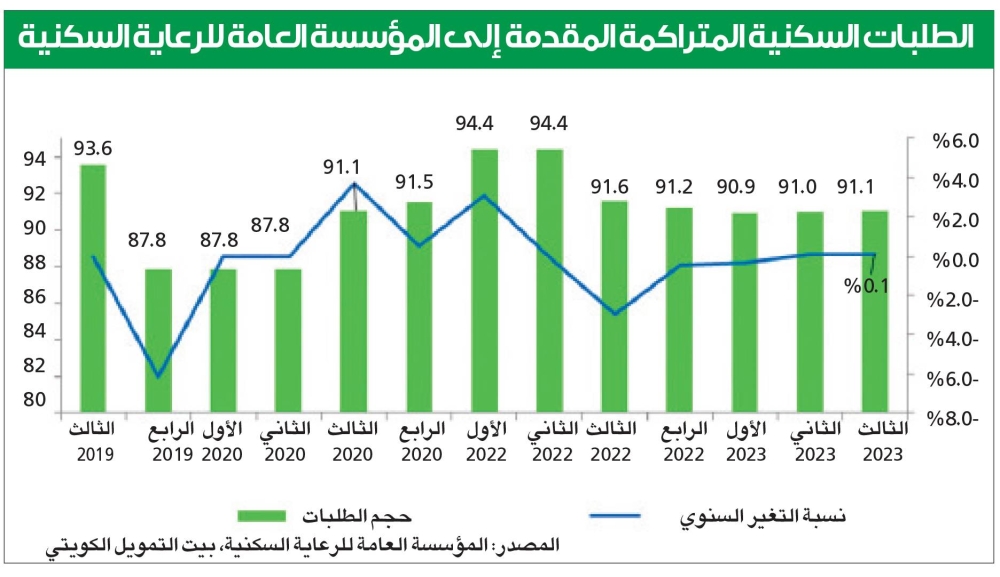 واصلت المؤسسة العامة للرعاية السكنية تلبية الطلبات السكنية القائمة طبقاً لآخر تقرير صادر عنها في سبتمبر 2023، إلا أن الطلبات السكنية القائمة حتى سبتمبر ارتفعت إلى 91 ألف طلب، ونجحت المؤسسة في تخفيض حجم هذه الطلبات بنسبة 0.6% على أساس سنوي، ومازالت الدولة ماضية في توفير وتوزيع الوحدات والأراضي السكنية، كما نجحت وزارة الإسكان في توقيع اتفاقية في مجال تطوير الإسكان عبر 7 اتفاقيات مشتركة ستساهم في دعم التوجه نحو تطوير المدن الإسكانية المتكاملة مع خلق تواصل استراتيجي طويل في مجال المشروعات السكنية.