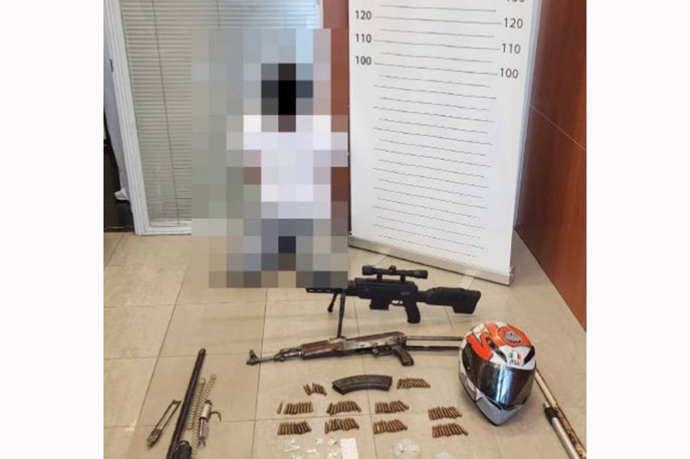 وعثر رجال المباحث بحوزة المشتبه به على 3 بنادق آلية وذخيرة، «وخوذة» شبيهة بالتي استُخدمت أثناء ارتكاب جريمة القتل وملابس مشابهة أيضاً للتي كان الجاني يرتديها لحظة ارتكاب الجريمة.