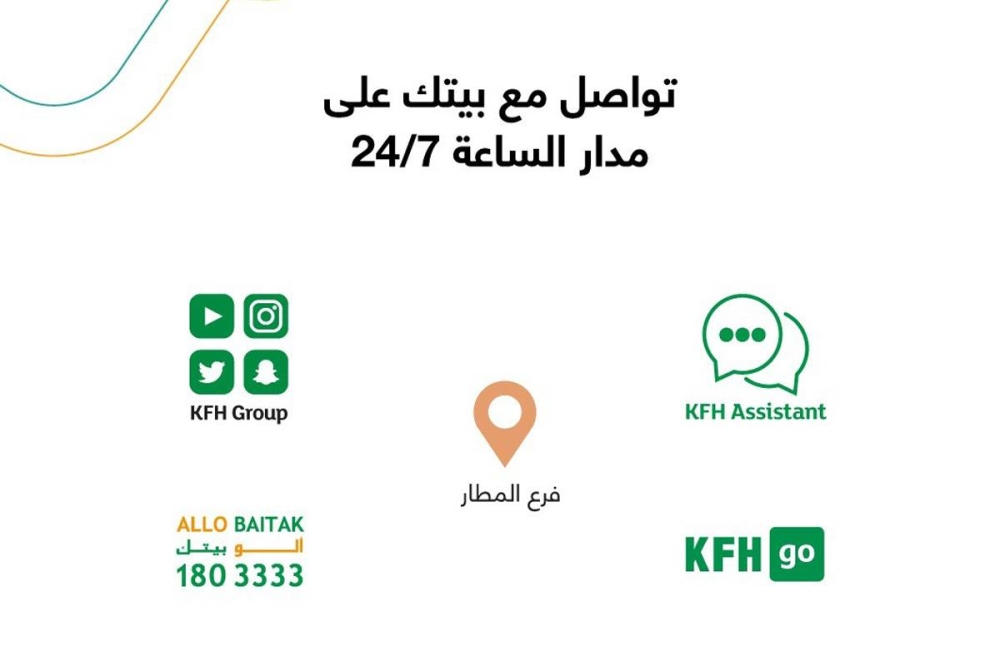 وتتوفر معظم الخدمات المصرفية عبر الموقع الإلكتروني kfh.com، أو عبرتطبيق الموبايل KFHOnline، أو من خلال فروع KFH Go الذكية المنتشرة في العديد من المناطق والمواقع المهمة، بالإضافة إلى قنوات «بيتك» على وسائل التواصل الاجتماعي، إلى جانب العديد من قنوات الخدمة الإلكترونية بالاعتماد على أحدث أدوات التكنولوجيا المالية والمنصات الرقمية. ويعتبر فرع KFH Go، قناة مصرفية ذكية تساعد على نقل تعاملات العملاء الاعتيادية الى فرع آلي مبتكر يوفر امكانات تتيح للعملاء الاستفادة من خدمات مصرفية ذات كفاءة عالية، بما يزيد على 80 في المئة من الخدمات والأعمال التي تقدمها الفروع بمفهومها التقليدي.