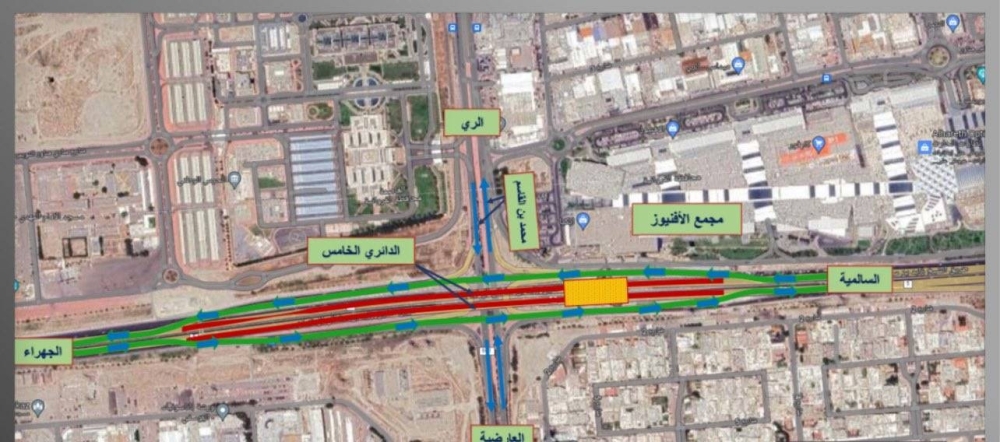 هيئة الطرق: تحويل مؤقت للدائري الخامس للقادم من الجهراء بإتجاه السالمية