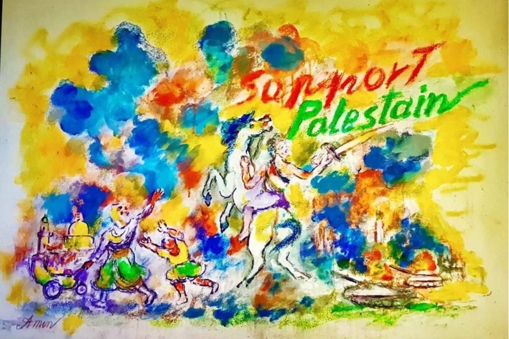 أبى الفنان أمين محفوظ ابن التسعين عاماً إلا أن يكون حاضراً في «المشهد الغزاوي»، فقد اكتملت عنده لوحة فنية رسمها بالألوان الزيتية، وهو عاكف عليها في مرسمه الحر منذ شهرين، لوحة أراد فيها التعبير عن قناعاته ودور الفن في الحروب ومشاركته بالوقوف إلى جانب أهل غزة والفلسطينيين الذين استشهدوا بالحرب الهمجية التي تقوم بها الآلة العسكرية الإسرائيلية، ودعوته الصادقة «ادعموا فلسطين»، التي كتبها باللغه الانكليزية وباللونين الأحمر والأخضر.