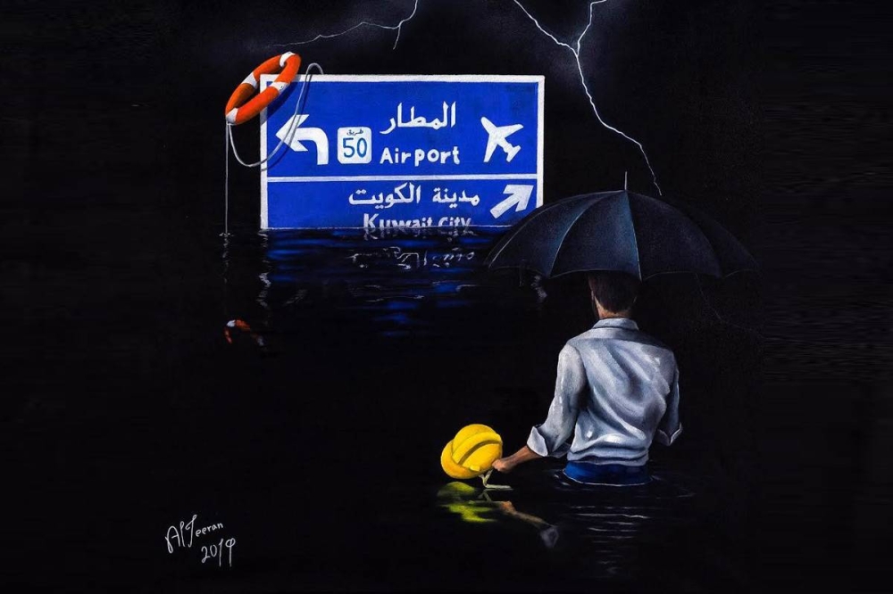 «الجريدة» التقت بعض الفنانين المشاركين، وكانت البداية مع الفنان عبدالله الجيران الذي قال إنه شارك بلوحتين، الأولى بعنوان «حسافة»، التي استخدم فيها الألوان الزيتية برسمها قياس 120X120، وهي تعبر عن واقع أليم للفساد، والثانية بعنوان «غرقنا» قياس 100X100، تتكلم عن غرق الشوارع أثناء المطر، وهي أيضا تعبر عن الفساد، موضحا أن اللوحتين بمنزلة رسالة إصلاح.