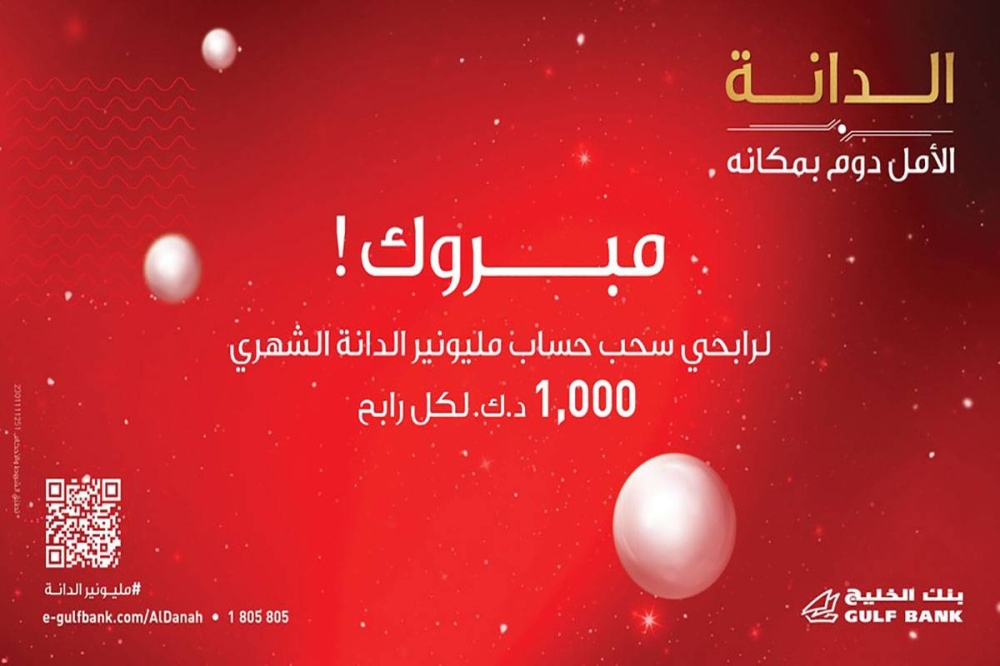 ومن المميزات العديدة التي يتمتع بها عملاء حساب الدانة، أنه الحساب الوحيد في الكويت الذي يحول فرصك بالفوز من السنة الماضية إلى السنة التالية، ضمن برنامج مكافأة العملاء على وفائهم وولائهم لبنك الخليج.