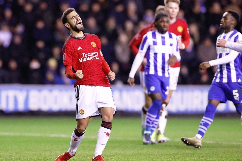 وبدا أن يونايتد سيعاني للخروج فائزاً على ملعب دي دبليو ستاديوم وتجاوز فخ ويغان، حيث أهدر مهاجموه الكثير من الفرص، في حين تكفلت العارضة برأسية الدنماركي راسموس هويلوند (29) وكرة الأرجنتيني أليخاندرو غارناتشو (40).