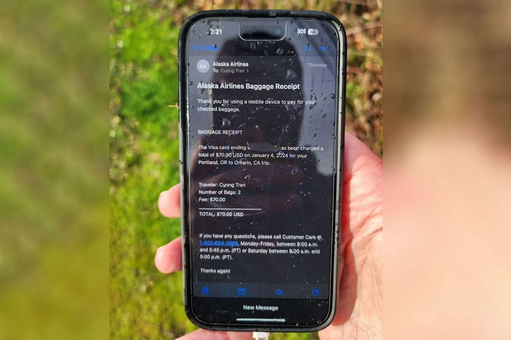 وروى سيناثان بيتس، وهو أحد مستخدمي الإنترنت، الأحد الماضي على منصة إكس، في منشور نقلته وكالة الصحافة الفرنسية، أنه عثر على جهاز آيفون على جانب طريق قرب بورتلاند مع شاشة مصابة بخدوش وتظهر رسالة إلكترونية من شركة الطيران حول الأمتعة.