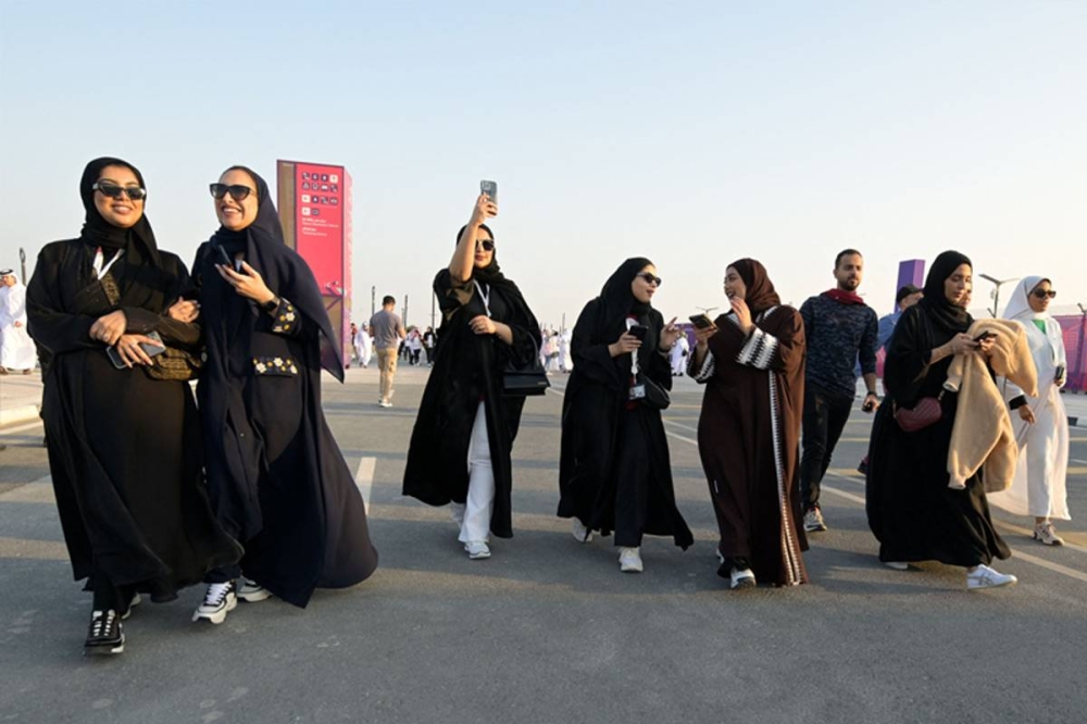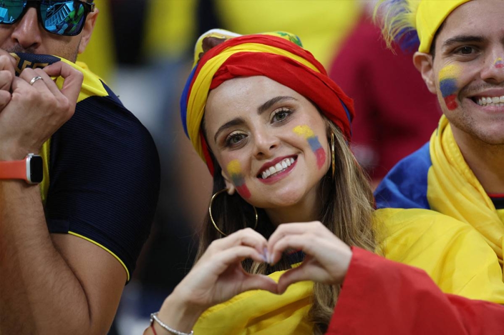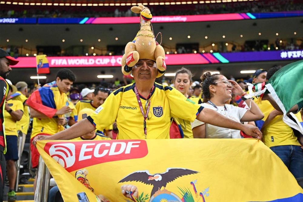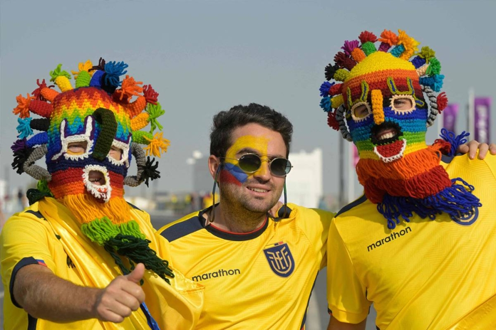 من محيط الملعب تبدأ أولى إشارات التشجيع، جنسيات مختلفة، أعلام قطرية وإكوادورية على أكتاف المشجعين المارّين إلى جانب صفّ من الجمال والخيول التي تبرز ثقافة البلد المضيف.