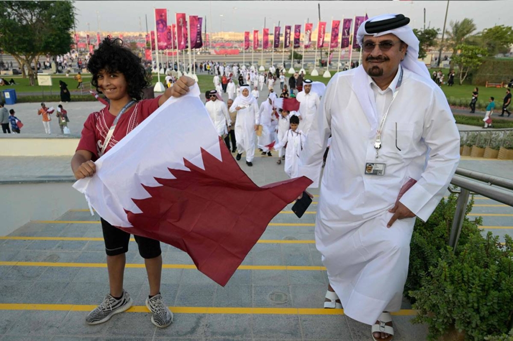 على طول الطريق المؤدي إلى استاد البيت في مدينة الخور الشمالية، والذي يبعد نحو 50 كيلومتراً شمال العاصمة الدوحة والمستوحى من الخيمة التقليدية التي سكنها أهل البادية، ترتفع الأعلام القطرية على مداخل البيوت ومن نوافذ السيارات.