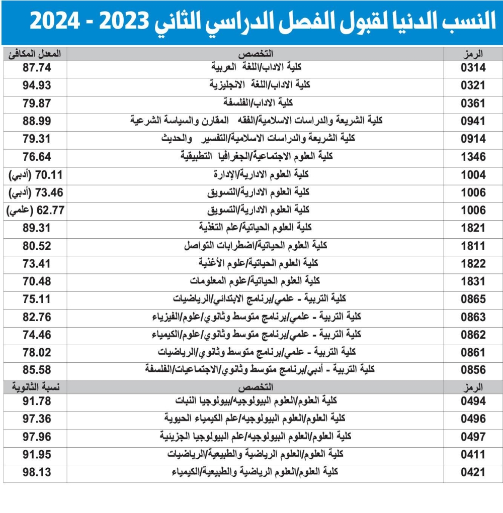 وقال عزيز، في تصريح، إنّ قبول الطلبة غير الكويتيين تم وفقا لترتيب رغباتهم في ضوء الأعداد المحددة لهم في كل كلية وفقا لقرار مجلس الجامعة، مع الأخذ بعين الاعتبار الحدود الدنيا لقبول الطلبة الحدود الدنيا لقبول الطلبة الكويتيين في الكليات المختلفة وسياسة القبول للعام الجامعي 2023/2024، التي تنص على أنّه «يشترط لقبول أي طالب غير كويتي في أي من تخصصات الجامعة ألا تقل نسبته في شهادة الثانوية أو معدله المكافئ عن أدنى نسبة للطلبة الكويتيين المقبولين في نفس التخصص».