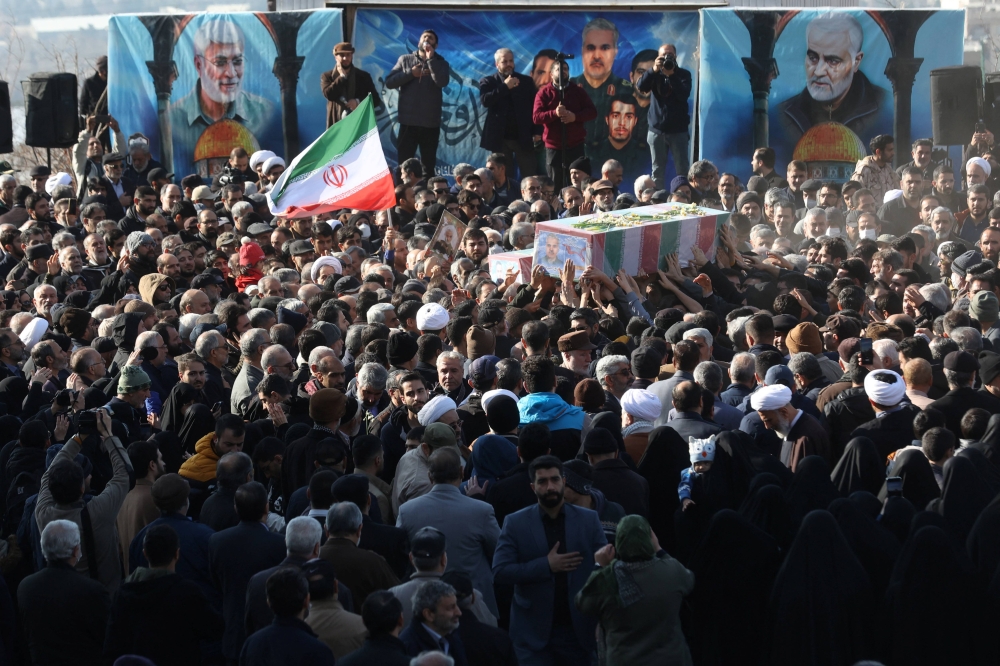 شيّع مئات الإيرانيين صباح اليوم الإثنين في طهران ثلاثة من خمسة مستشارين في الحرس الثوري الإيراني قتلوا السبت في غارة نُسبت إلى إسرائيل في سورية.