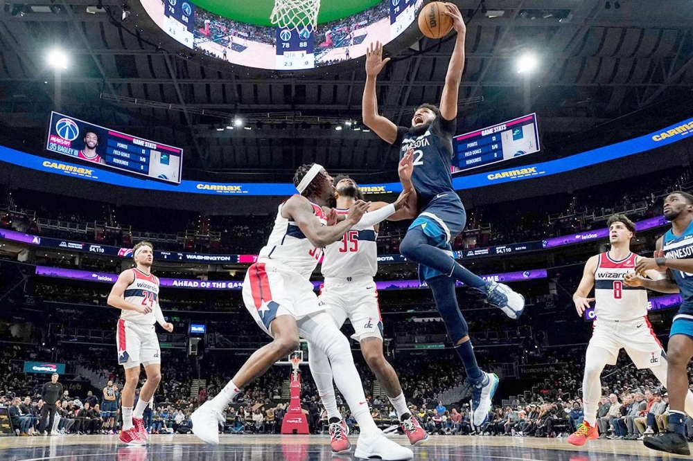 استعاد مينيسوتا تمبروولفز توازنه، وتجنب تلقي ثلاث هزائم متتالية لأول مرة هذا الموسم، بفوزه على مضيفه واشنطن ويزاردز 118-107، أمس الأربعاء، في دوري كرة السلة الأميركي للمحترفين.