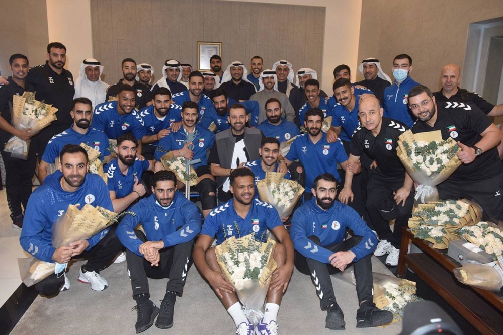 وكان في مقدمة مستقبلي وفد المنتخب، وزير الدولة لشؤون الشباب داود معرفي، والمدير العام لهيئة الرياضة يوسف البيدان، ورئيس اللجنة الأولمبية الكويتية الشيخ فهد الناصر، ونائب المدير العام للهيئة العامة للرياضة بشار عبدالله.