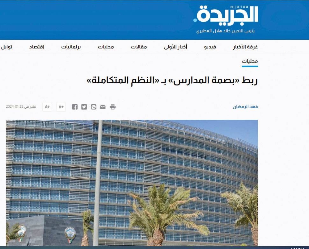 تأكيداً لخبر «الجريدة» المنشور في عددها 25 يناير الماضي، باشرت «التربية» إجراءاتها الخاصة بربط نظام بصمة الحضور والانصراف الخاص بموظفي ديوان عام الوزارة مع برنامج النظم المتكاملة، حيث سيتم وقف العمل بـ ITask الخاص بالإثبات (الحضور والانصراف) بعد غد الخميس.