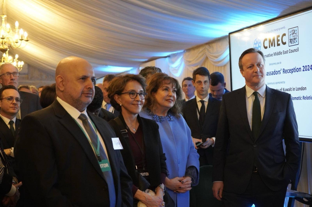 وتقدم كاميرون بجزيل الشكر لسفارة دولة الكويت لدى المملكة المتحدة، وسفيرها بدر العوضي على رعاية الاستقبال السنوي للسفراء العرب في هذا العام.