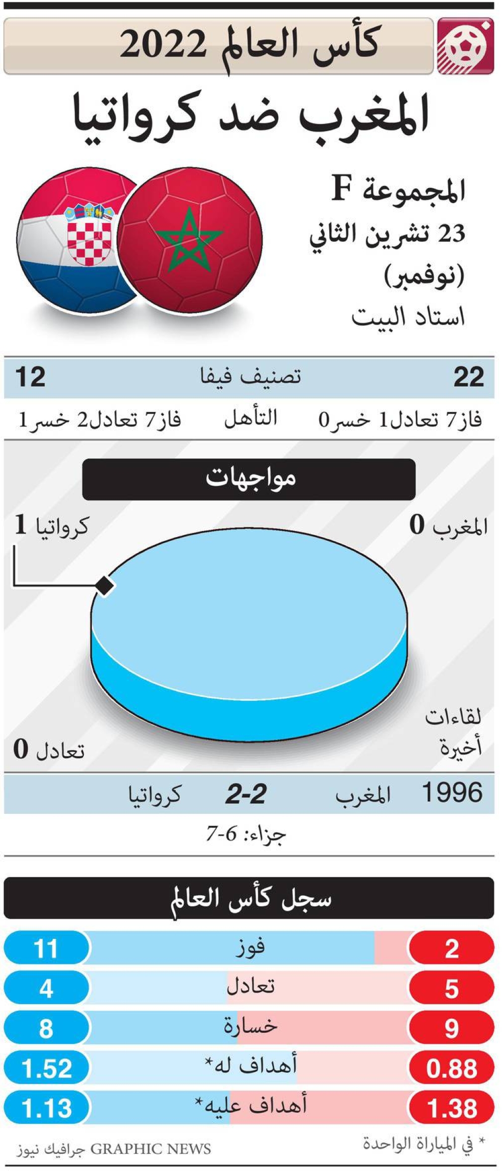 على الورق، يبدو الكروات مرشحين بقوة لانتزاع بطاقة المجموعة السادسة، ويسعون إلى تأكيد ذلك اعتباراً من مواجهة اليوم. لكن المنتخب الأوروبي يدرك جيداً أن المهمة لن تكون سهلة أمام خصم عنيد يحدوه الأمل في تخطي الدور الأول والتأكيد على أن بلوغه النهائيات لم يكن من قبيل الصدفة.