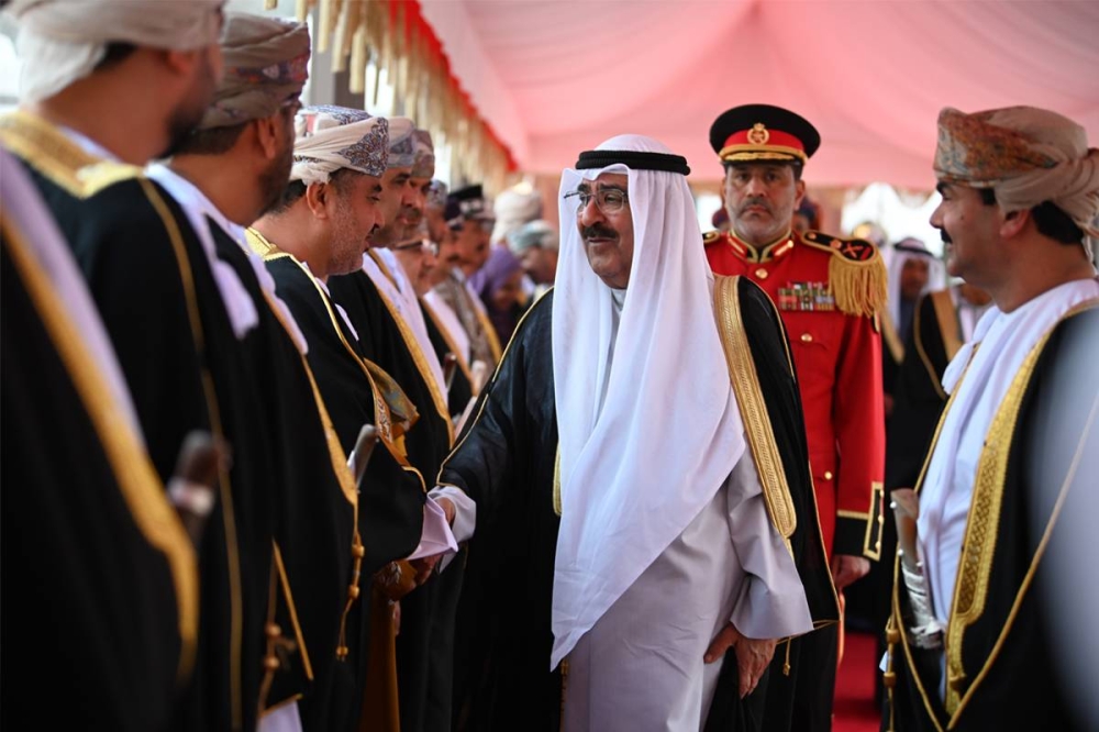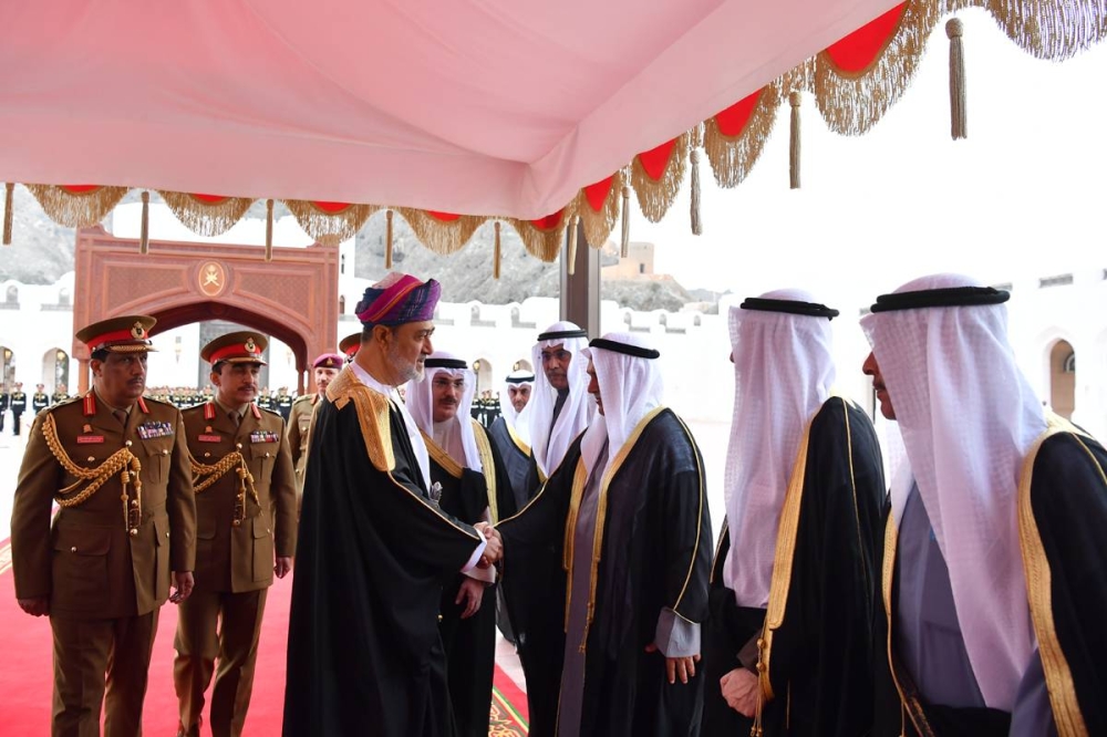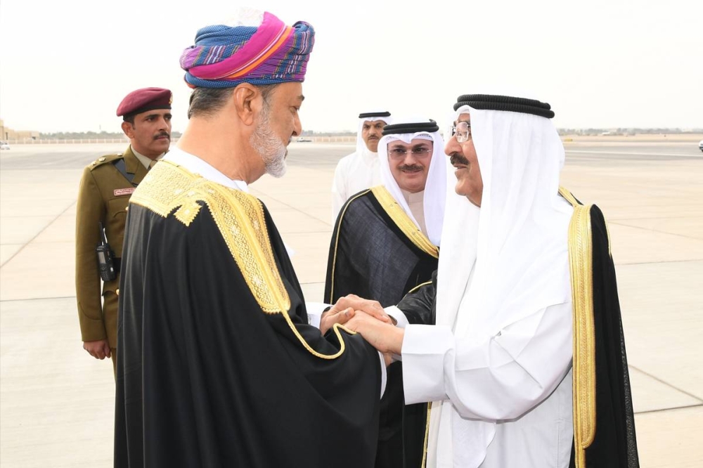 وقد كان في مقدمة مستقبلي سموه على أرض المطار السلطان هيثم بن طارق، سلطان عمان الشقيقة، كما كان في استقبال سموه، شهاب بن طارق آل سعيد، نائب رئيس الوزراء لشؤون الدفاع، ووزير ديوان البلاط السلطاني خالد بن هلال البوسعيدي، ووزير المكتب السلطاني الفريق أول سلطان بن محمد النعماني، ورئيس بعثة الشرف المرافقة وزير الداخلية حمود بن فيصل البوسعيدي، ووزير الخارجية بدر بن حمد البوسعيدي، وسفير سلطنة عمان لدى دولة الكويت، د. صالح الخروصي، وسفير دولة الكويت لدى سلطنة عمان، د. محمد الهاجري.