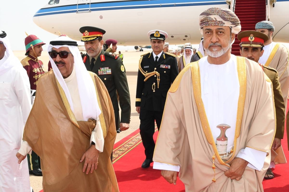 وكان في استقبال سموه وسلطان عمان نائب رئيس مجلس الوزراء ووزير النفط د. عماد العتيقي، ووزير المالية بسلطنة عمان الشقيقة سلطان بن سالم الحبسي، وعدد من المسؤولين من الجانبين الكويتي والعماني.