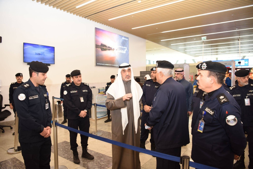 وذكر البيان أن الوزير تفقد مطار الكويت الدولي ومباني الركاب (1T) و(4T) و(5T) وقاعة التشريفات واطلع على آلية العمل في «كاونتر» جوازات المغادرين والقادمين وصالة إصدار التأشيرات وآلية التعاون بين قطاعات وزارة الداخلية المعنية والإدارة العامة للجمارك والإدارة العامة للطيران المدني.