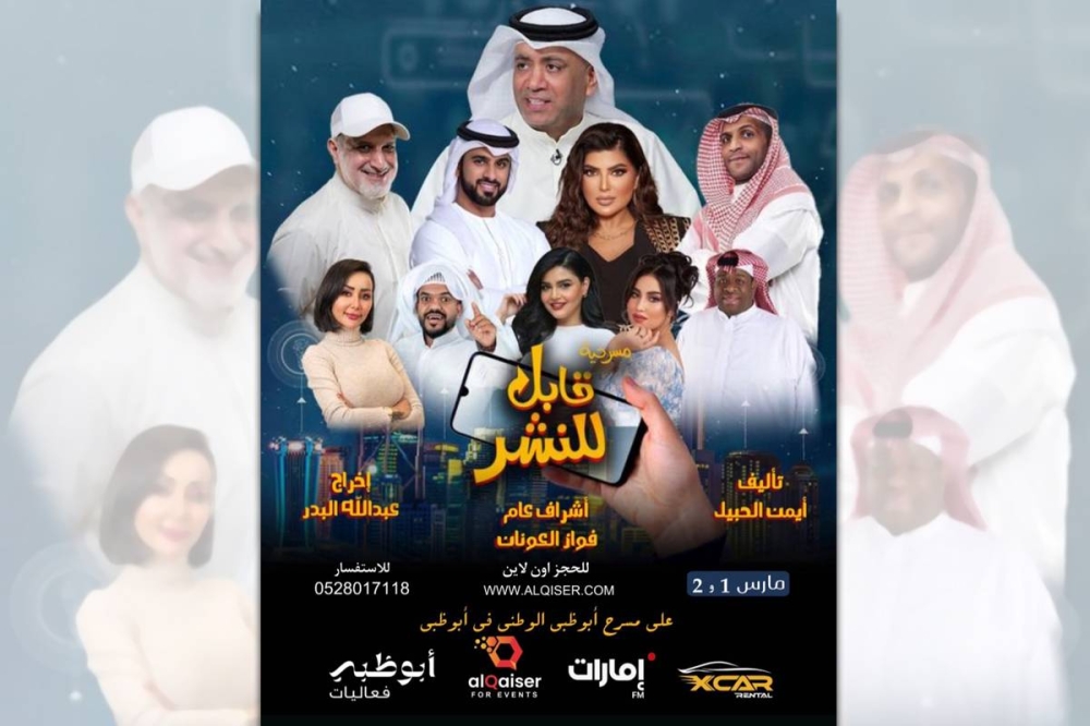 أعلن الفنان أحمد العونان عن الاستعداد لعرض مسرحيته «قابل للنشر» في أبوظبي، ونشر بوستر العمل، وكتب: «قابل للنشر على مسرح أبوظبي الوطني 1 و2 مارس، للحجز الرابط موجود بالبايو، حياكم الله».