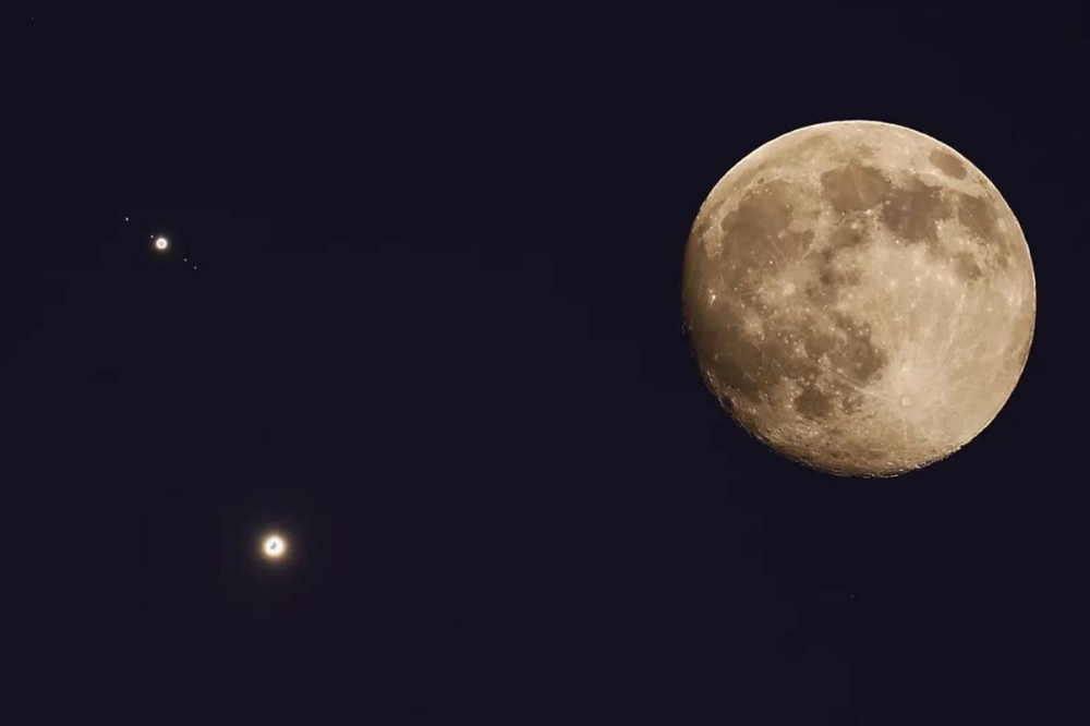 وأضاف المركز، في بيان لـ «كونا»، أن أولى هاتين الظاهرتين هي اقتران القمر مع كوكب المشتري (عملاق المجموعة الشمسية) بعد غروب الشمس حتى منتصف الليلة والليلة التي تليها، اللتين تصادفان يومي الرابع والخامس من شعبان الجاري، موضحاً أن المشتري له أربعة أقمار تسمى (جاليليو) ويمكن رؤيتها من خلال استخدام تلسكوب صغير.