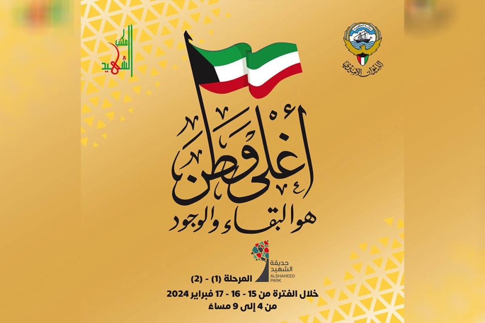 احتفالا بأعياد الكويت الوطنية، أعلن مكتب الشهيد تنظيمه مهرجان «أغلى وطن هو البقاء والوجود» بدءاً من غد الخميس حتى نهاية الأسبوع في حديقة الشهيد.